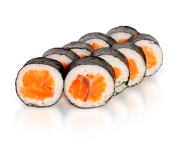 Лосось, водоросли нори, рис. Энергетическая ценность: 501 ккал
