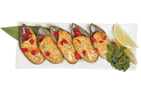 Мидии, тобико, перец болгарский, лимон, японский майонез. Энергетическая ценность: 502 ккал