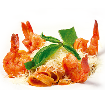 феттуччини, креветки, томат, лук,чеснок, пармезан, базилик Энергетическая ценность: