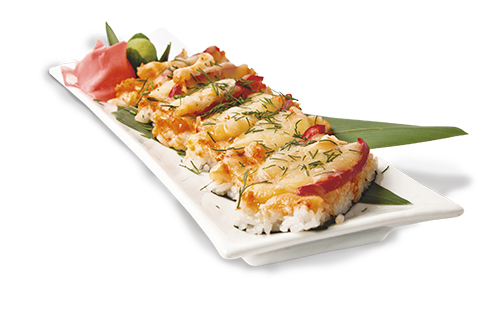 Креветка, икра тобико, томат, сыр моцарелла, соус спайси, кунжут. Энергетическая ценность: 615 ккал