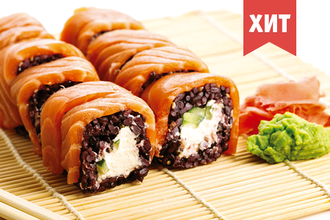 Лосось, огурец, сыр Филадельфия, дикий рис. Энергетическая ценность: 417 ккал