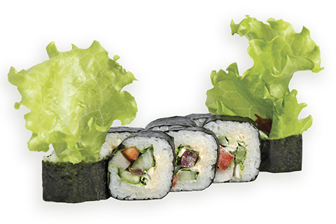 Томат, дайкон, перец болгарский, огурец, лист салата, рис, нори, японский майонез. Энергетическая ценность: 356 ккал