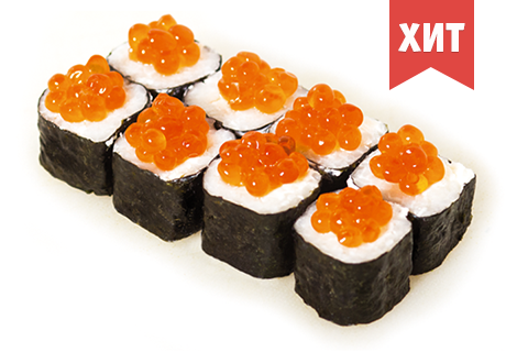 Икра лосося, сыр Филадельфия, рис, нори. Энергетическая ценность: 224 ккал