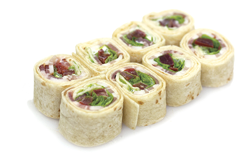 Бекон, лист салата, помидор, мексиканская лепешка тортилья, японский майонез. Энергетическая ценность: 501 ккал