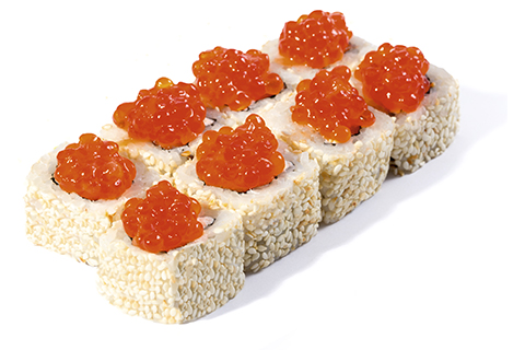 Икра лосося, сыр Филадельфия, кунжут. Энергетическая ценность: 333 ккал