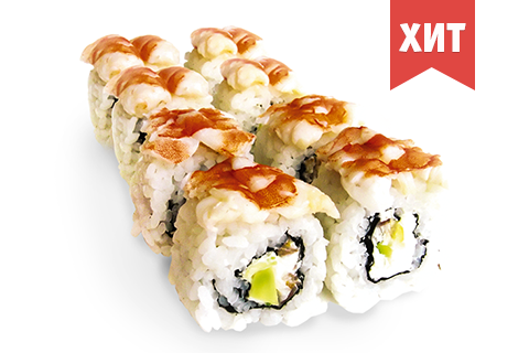 Креветка, огурец, сыр Филадельфия. Энергетическая ценность: 366 ккал