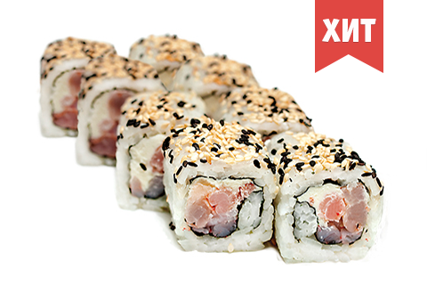 Коктейльная креветка, сыр Филадельфия, кунжут белый и черный. Энергетическая ценность: 335 ккал