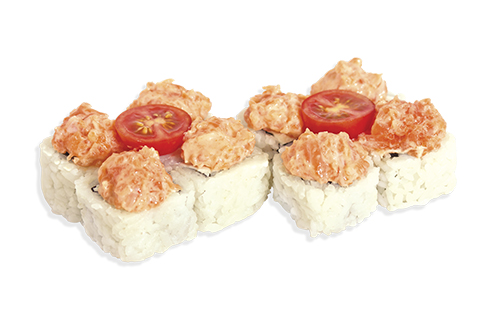 Фарш лосося, сыр Филадельфия, авокадо, огурец, томат черри, соус спайси. Энергетическая ценность: 426 ккал