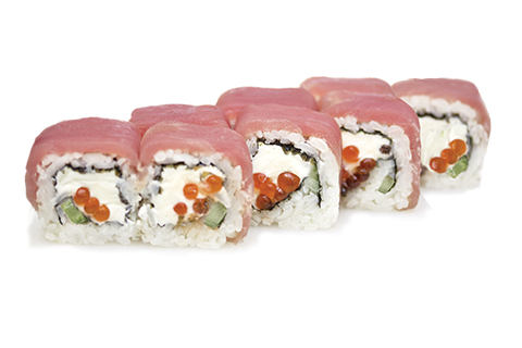 Тунец, икра лосося, огурец, сыр Филадельфия. Энергетическая ценность: 401 ккал