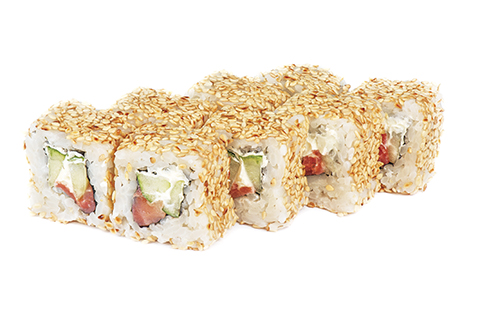 Лосось, авокадо, огурец, кунжут, японский майонез. Энергетическая ценность: 414 ккал