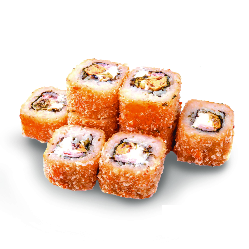 Мидии жареные, бекон, сыр филадельфия, кляр, мука темпурная, панировочные сухари, кунжут, соус унаги