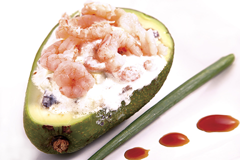 Креветка коктейльная, шампиньоны, авокадо, икра лосося, сливки, японский майонез. Энергетическая ценность: 610 ккал