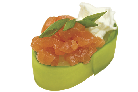 Лосось, огурец, лук зелёный, сыр Филадельфия. Энергетическая ценность: 45 ккал