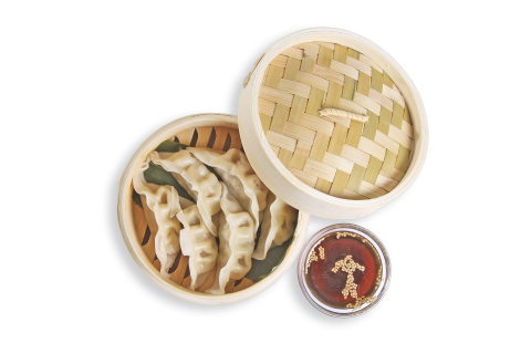 Состав: тесто для японских пельменей, креветки, капуста пекинская, лук репчатый, кунжут, соус гёдза